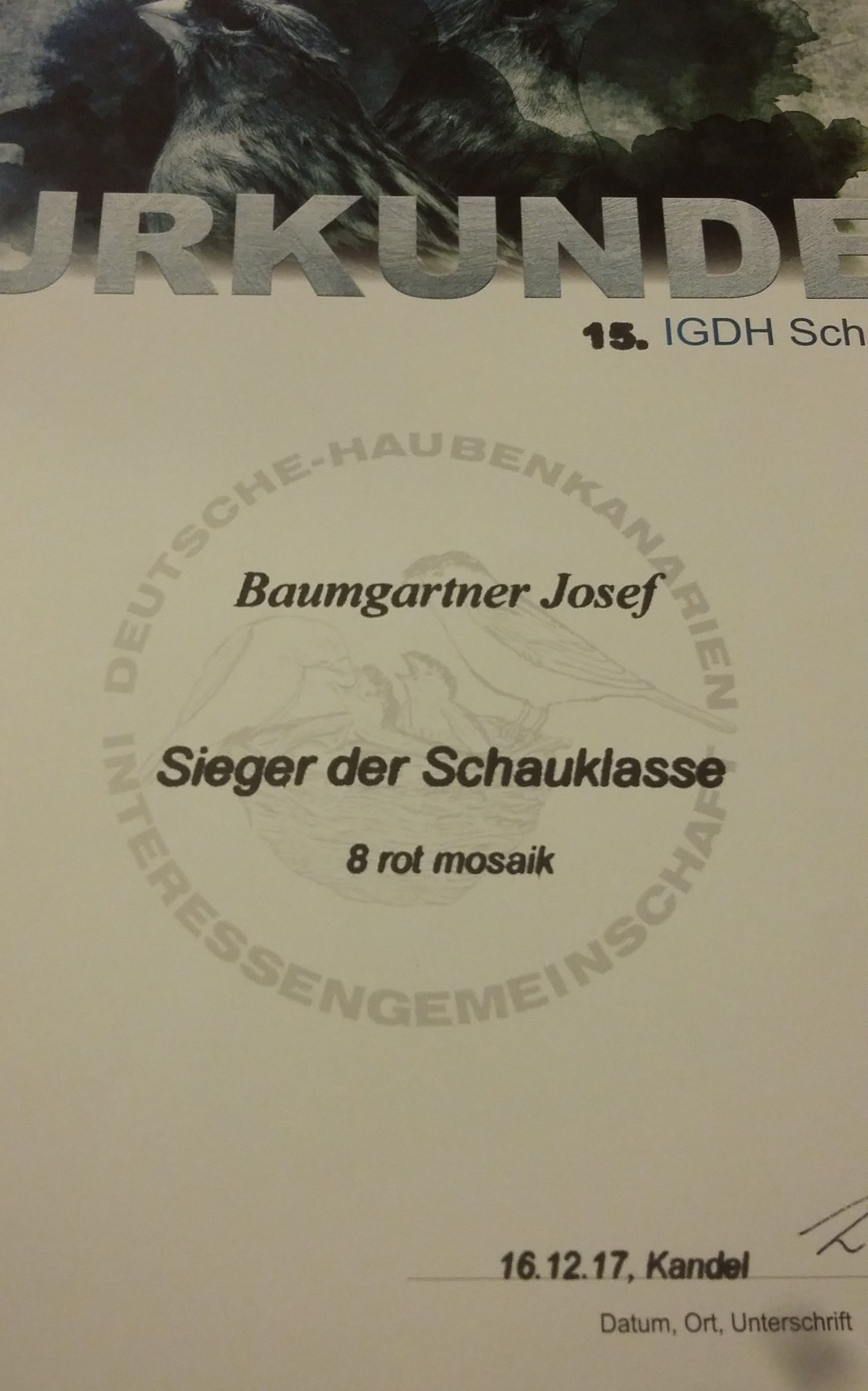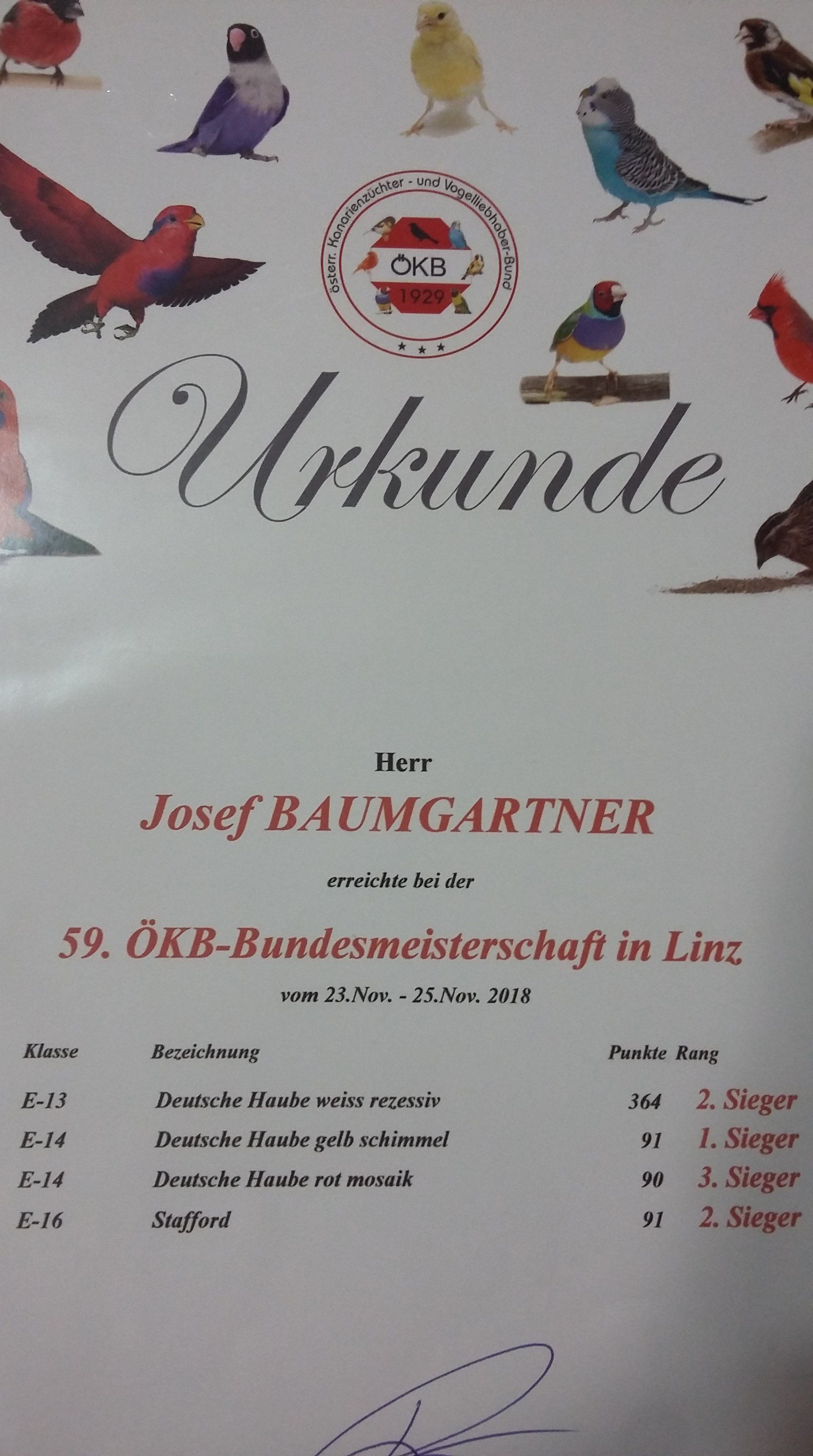 AKV Vereinsschau in Linz 2019. 1. Sieger Einzel weiss rezessiv
